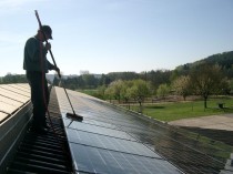 Neben der Stromerzeugung hat die Anlage z.B. im Sommer den weiteren Vorteil, dass sie isolierend wirkt und der Stall sich so weniger aufheizt. Doch eine Fotovoltaikanlage möchte gepflegt werden: