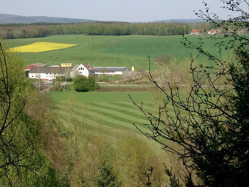 Blick auf unseren Kastanienhof vom Schallenberg aus im Jahr 2002